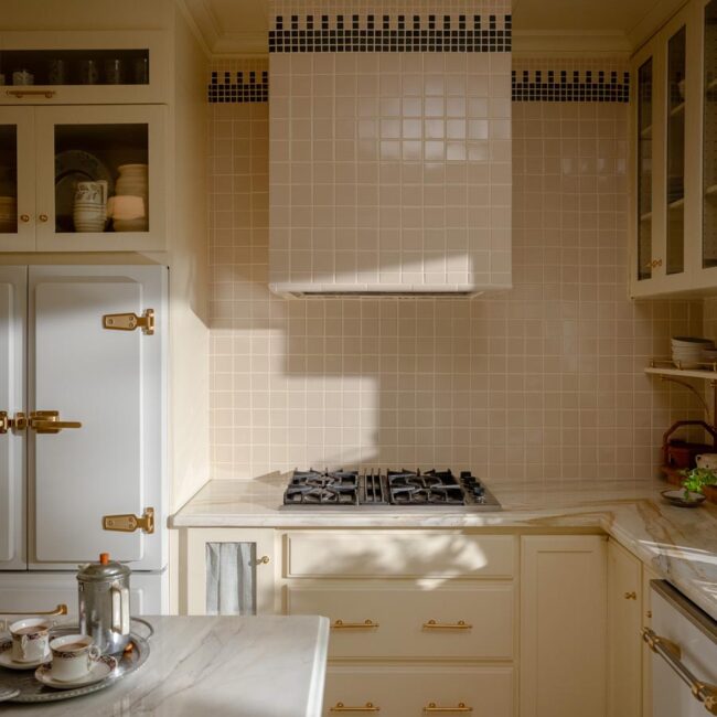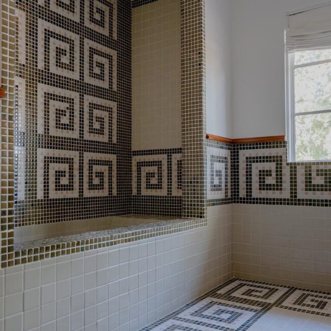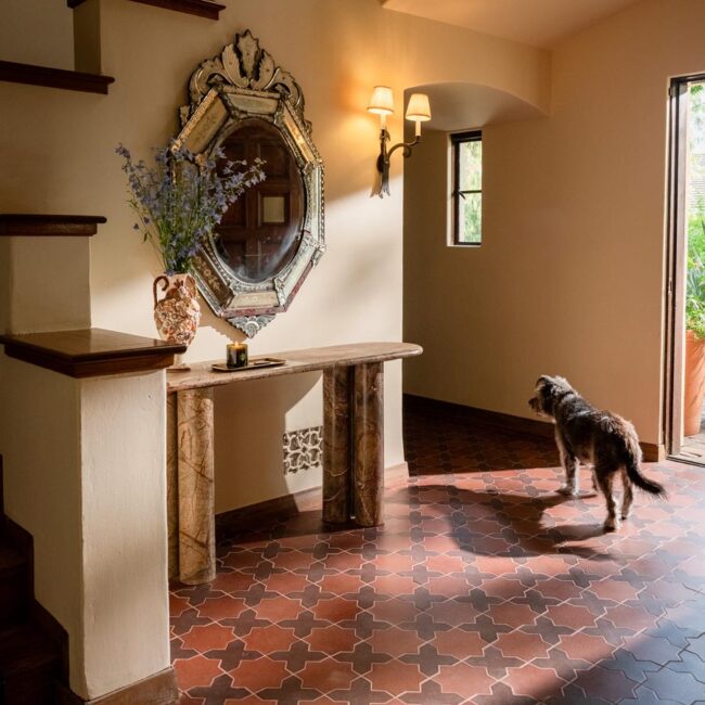 - Custom hand-glazed California tile throughout