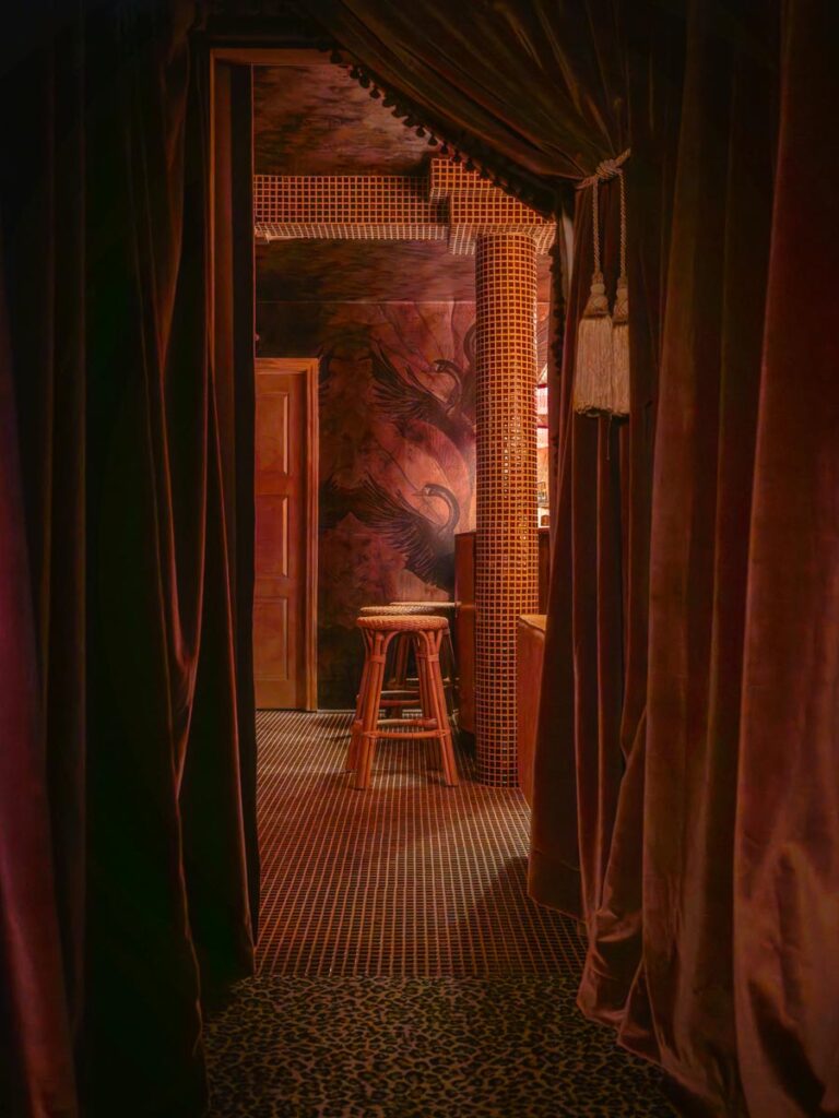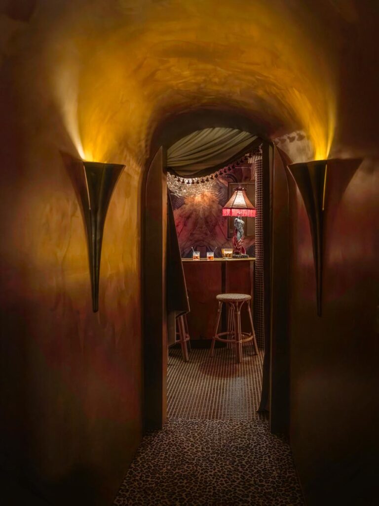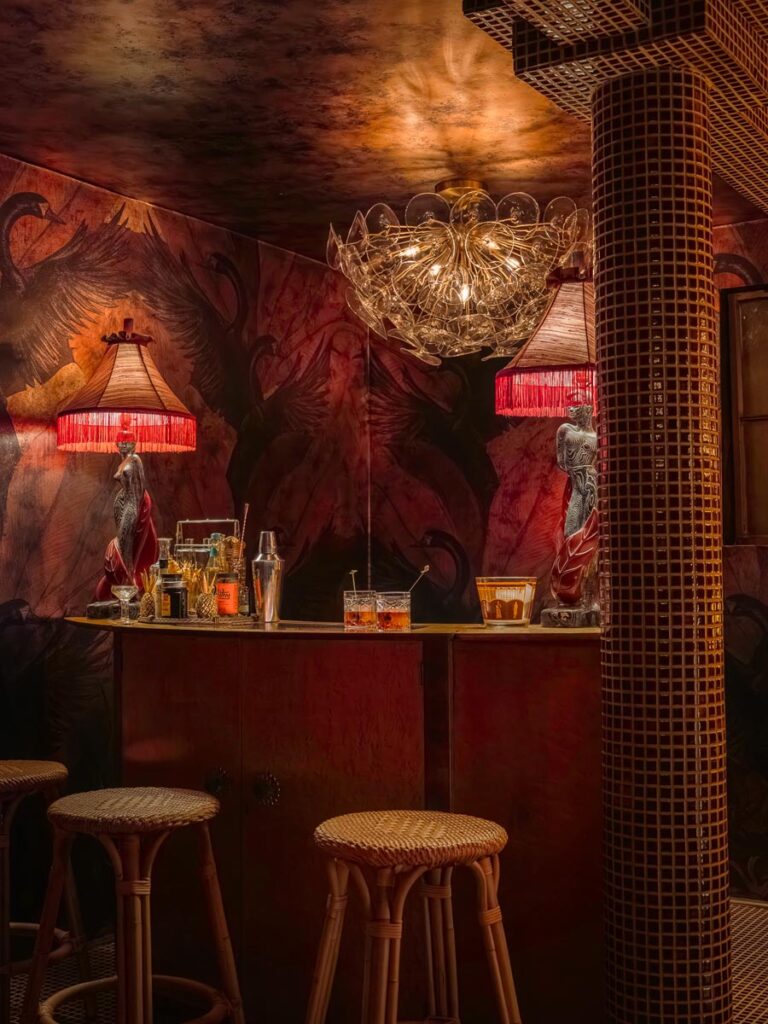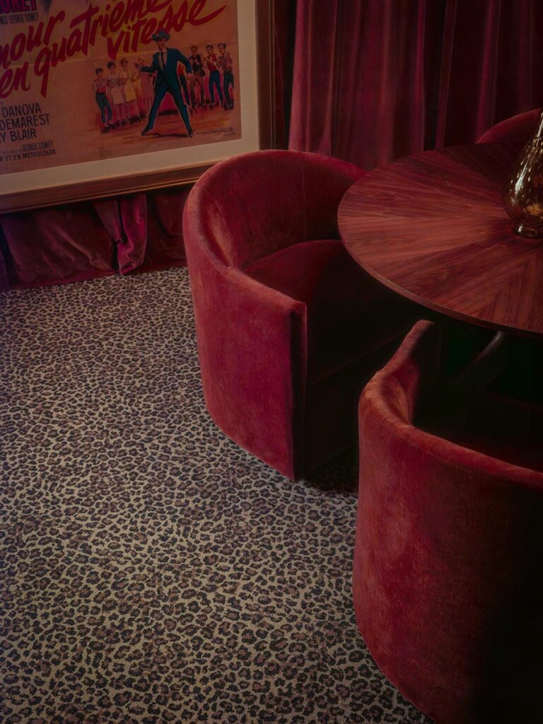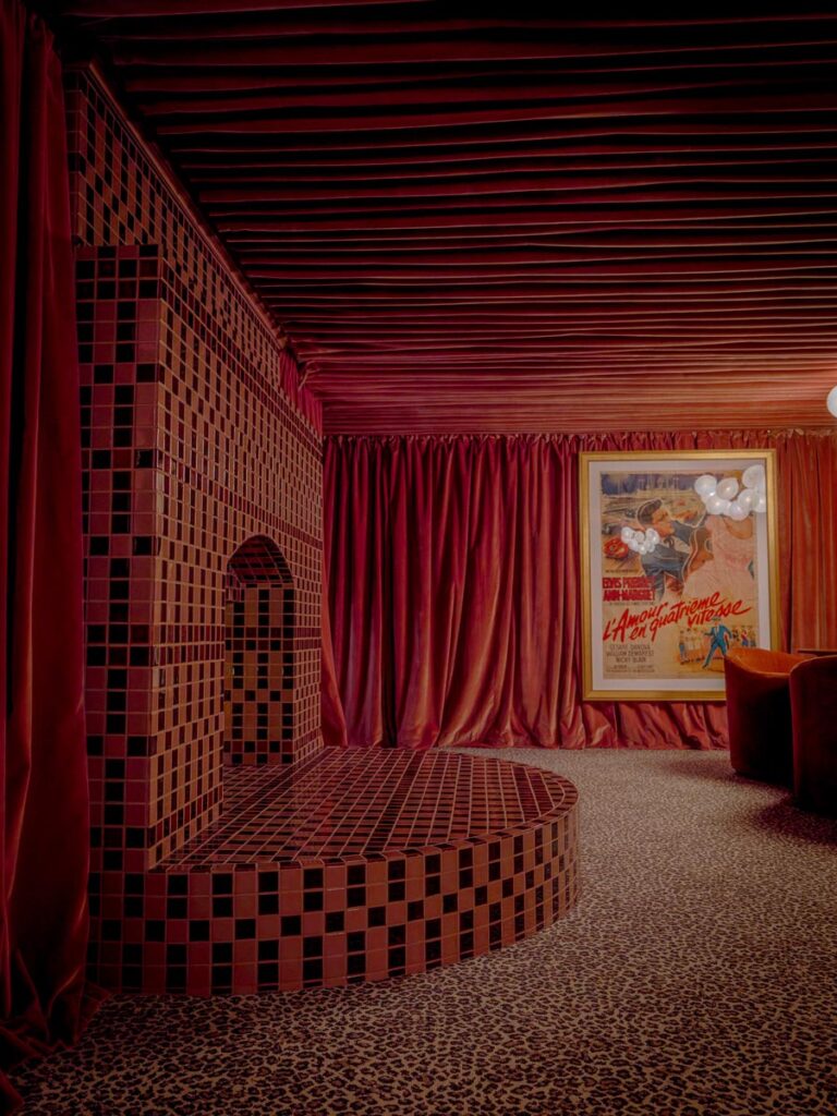 - Hollywood Regency–inspired speakeasy and private screening room