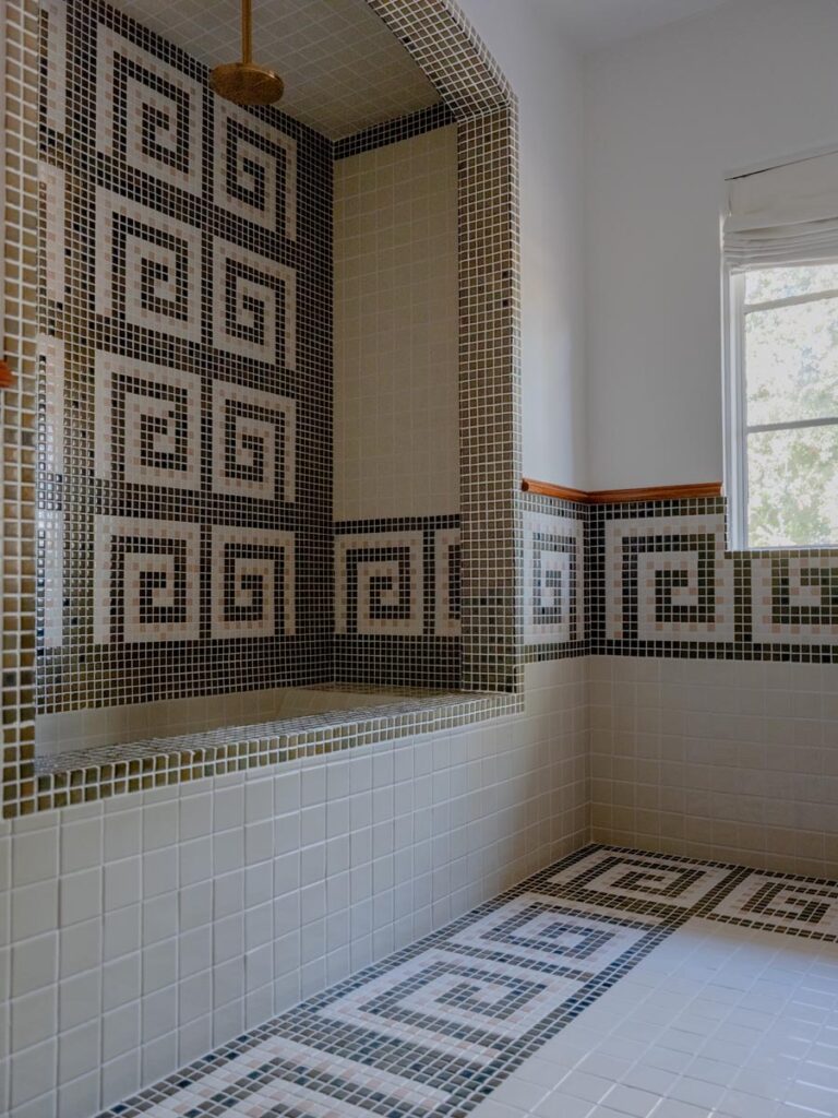 - Custom hand-glazed California tile throughout
