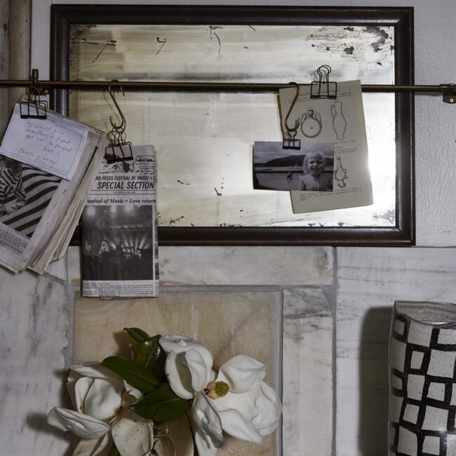 For shoots, Loveland reads as a series of natural backdrops. Nothing feels overdesigned, yet every surface carries intention. Light shifts easily throughout the day, revealing subtle contrasts—plaster against tile, vintage forms beside modern lines, patina layered over simplicity. The house supports both stillness and flow, allowing scenes to unfold without interruption.