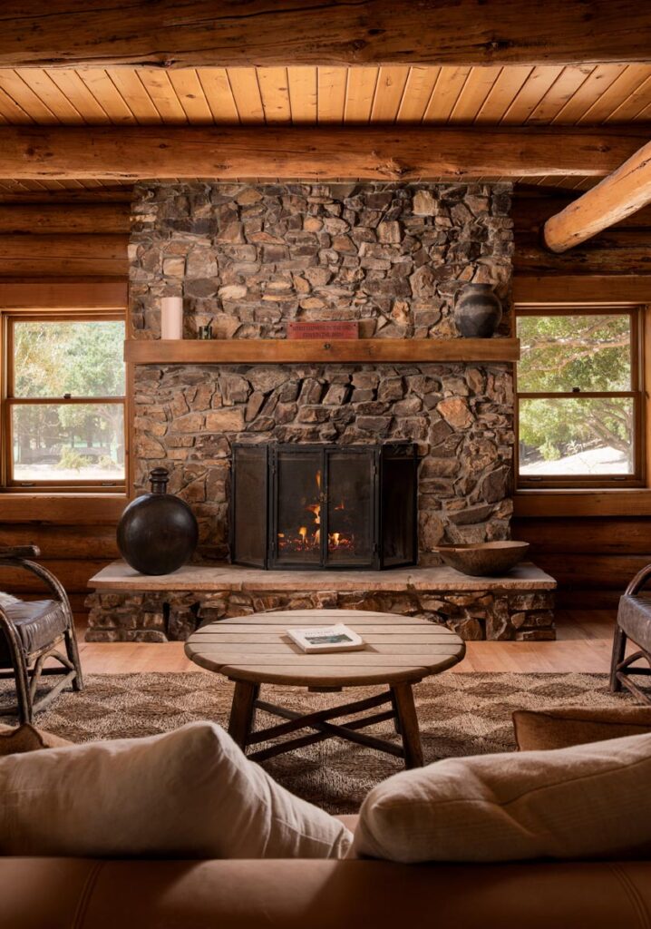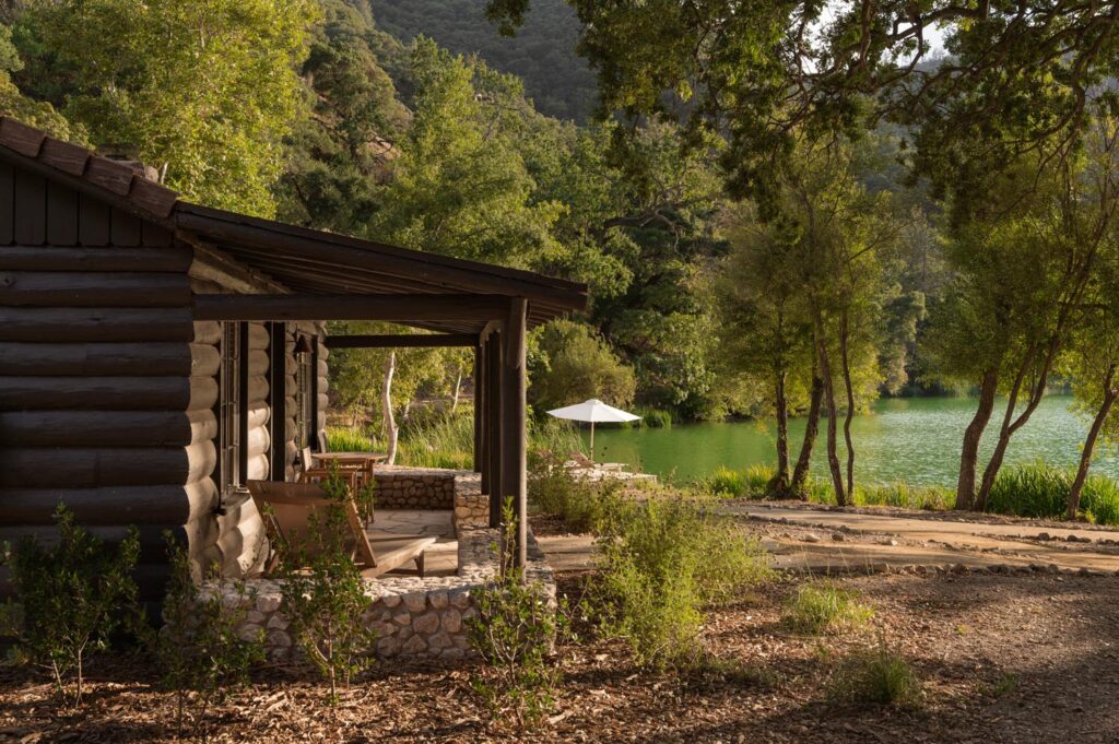 Cabins line the northern edge of the lake beneath a dense redwood canopy, each thoughtfully restored to balance comfort with restraint. The landscape unfolds gradually—meadows, dock, ranch house, dome, and firelit gathering spaces—supporting both structured programming and unplanned moments of pause.